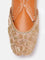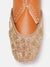 A pair of peach embellished mojaris, has regular styling with slip-on closure