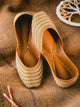 A pair of peach embellished mojaris, has regular styling with slip-on closure